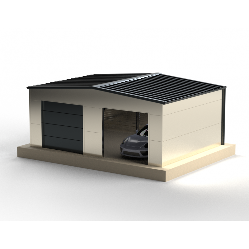Garage isolé - 2 places - Bipente - Avec 2 portes de garage